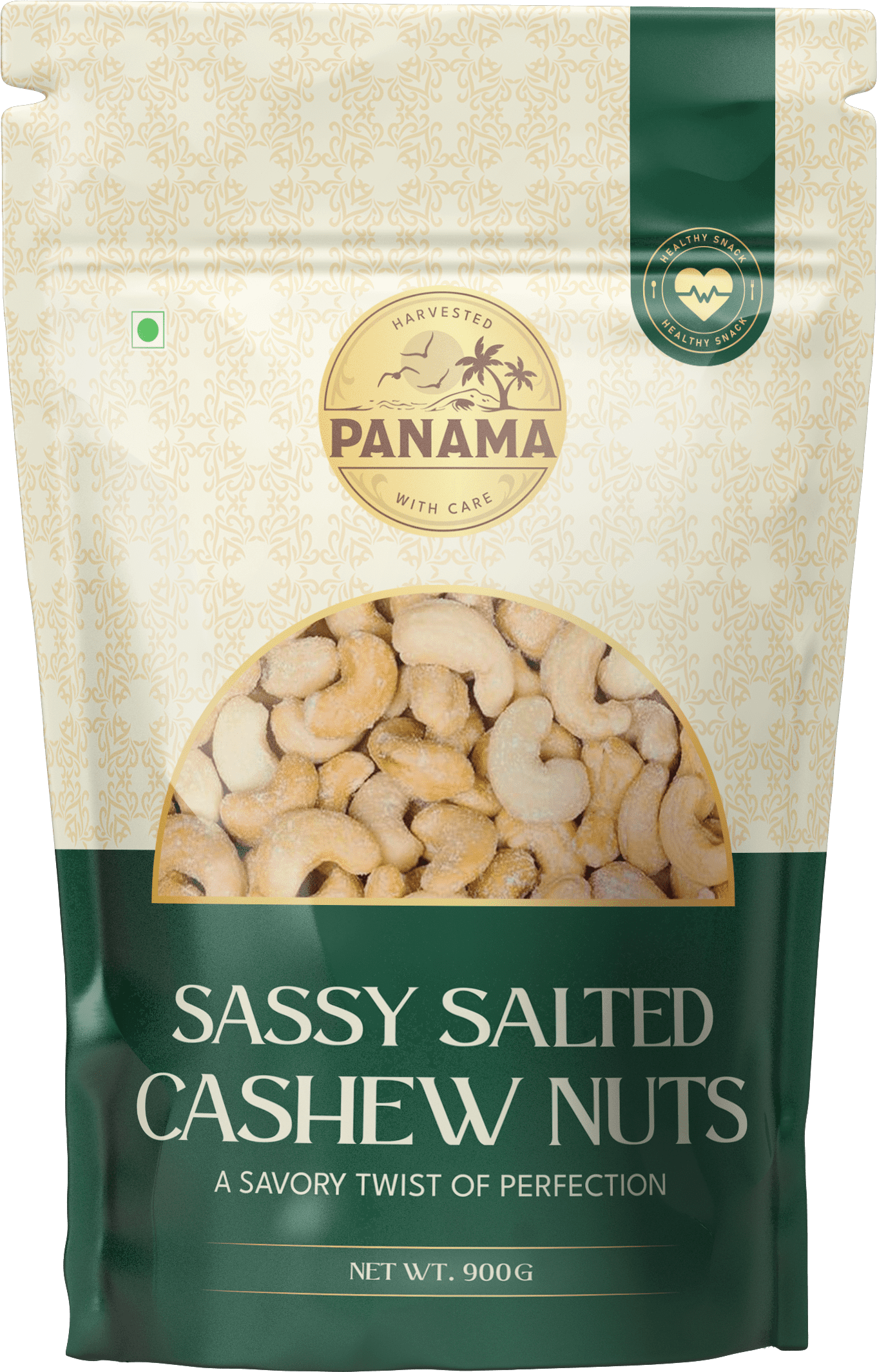 Sassy Salted cashew nuts seasoned with a balance of crunch and saltiness.