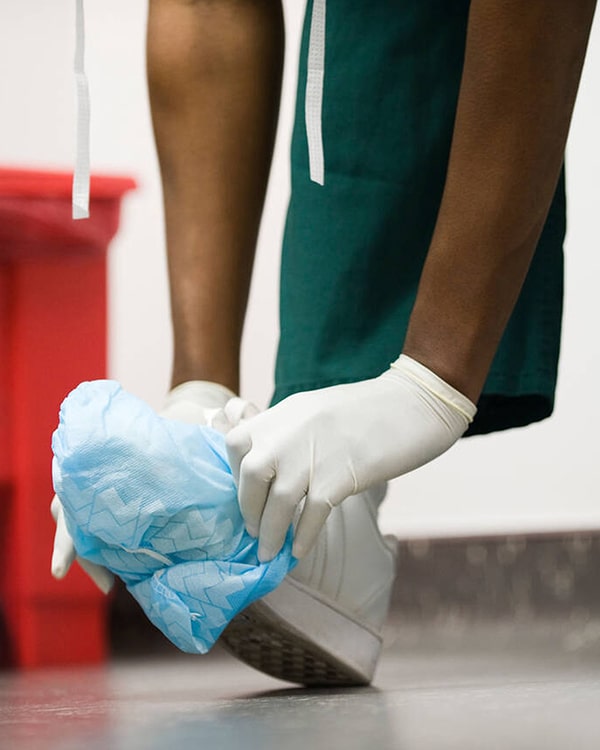 Non-woven and anti-slip 25 - 40 GSM medical grade PP spunbond shoe covers, suitable for all types of medical environments.